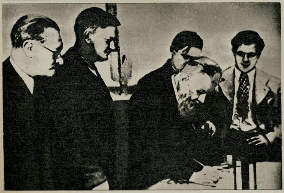 J. Grigalavičius, P. Cvirka) are signing the declarations adopted by People’s Parliament. 23.07.1940