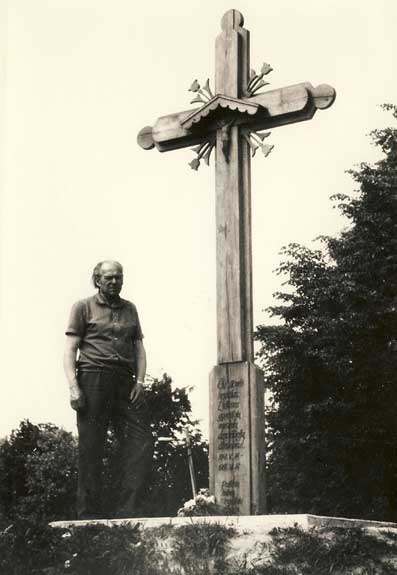 The cross and its author Pijus Krušinskas. The cross is located by the train station (E. Fryko St.) and is the commemoration of the exile