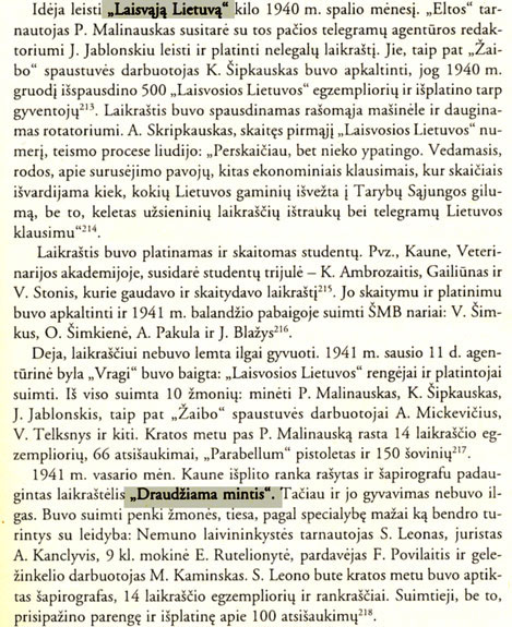 In October of 1940, Povilas Malinauskas agreed with Jonas Jablonskis, the editor of Elta, to publish an illegal newspaper Independent Lithuania
