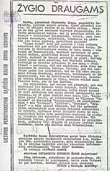 10.06.1988 The Initiative group of the Lietuvos Persitvarkymo Sąjūdis (eng. The Reform Movement of Lithuania) for Kaunas zone was elected in the Architects’ house (Vilniaus St. 22).