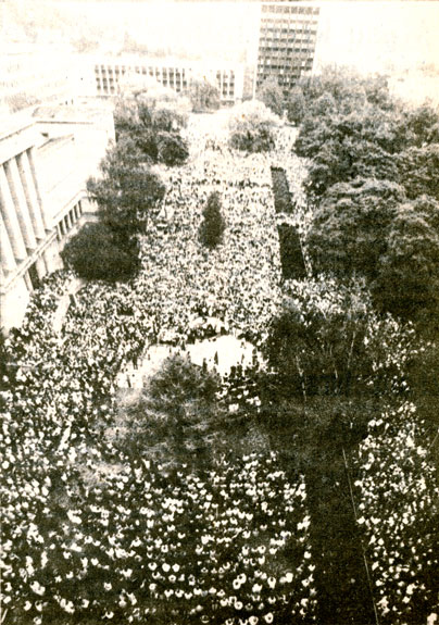 01.11.1987 an unauthorized rally in commemoration of Maironis 125th birthday anniversary was held at Maironis’ Tomb.