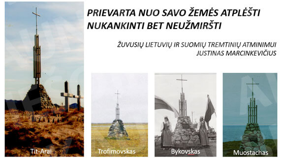 26.07–10.08.1989 the participants of the expedition "Lena-89", organized by Kaunas residents, built four monuments to the Lithuanian and Finnish deportees in the delta of the Lena river.