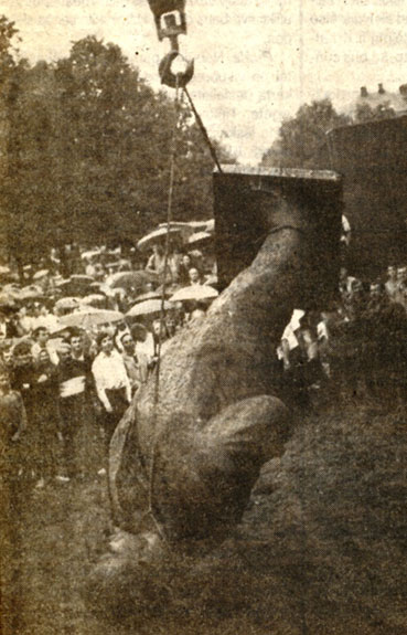 14.06.1990 Kaunas laid the foundation for the start of destruction of the Soviet Occupation symbols by tearing down the statues of the former Communist persona’s Vincas Mickevičius-Kapsukas and Feliksas Dzeržinskis.