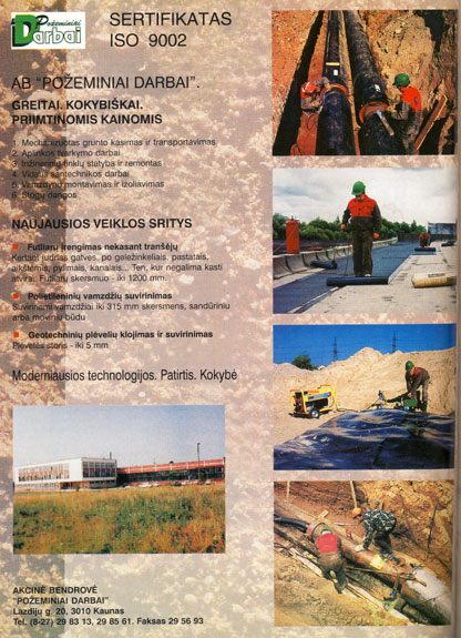 1992 the Joint Stock Company ‘‘Kauno dujotiekio statyba’’ (‘‘Kaunas Gas Pipeline Construction’’, Elektrėnų St. 7) was established.