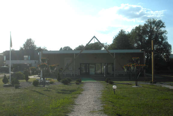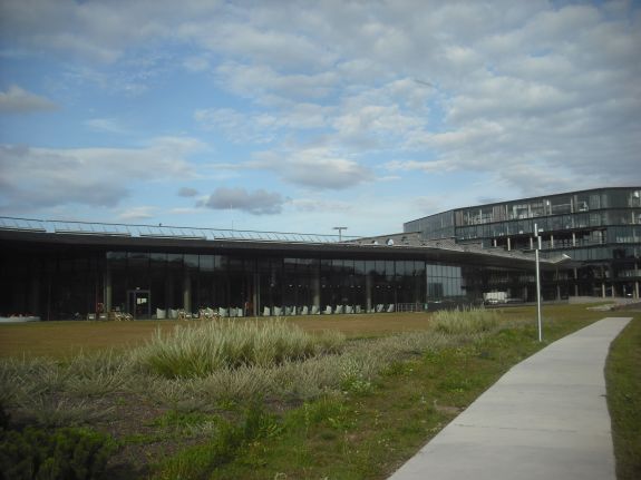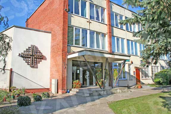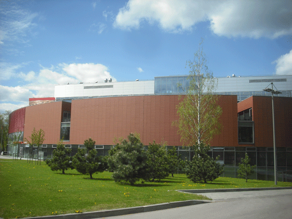 The building has an Olympic-size swimming pool (50 m long, 10 lanes) with 528-seat stands, a smaller pool for children’s swimming lessons, a spa area and a sports club.