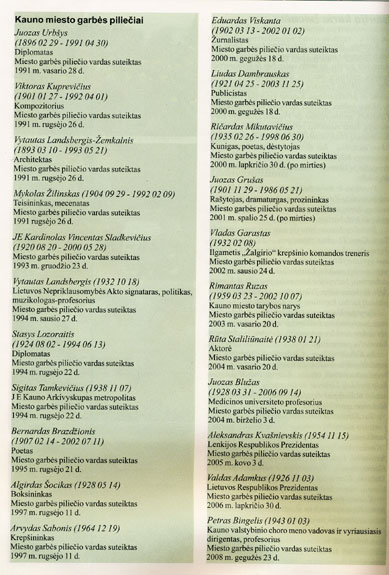 - Geros naujienos – pro memoria : [apie miesto „Garbės piliečio“ teises ir privilegijas]. – Jūratė Kuzmickaitė. – Iliustr. // Kauno diena. – 2002, balandžio 26, p. 1, 5.