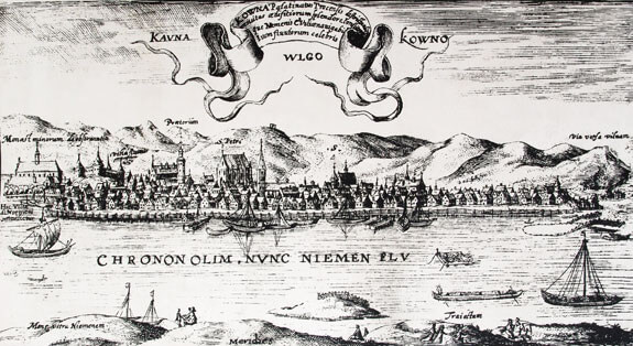 Engraving of Kaunas panorama. 1600
