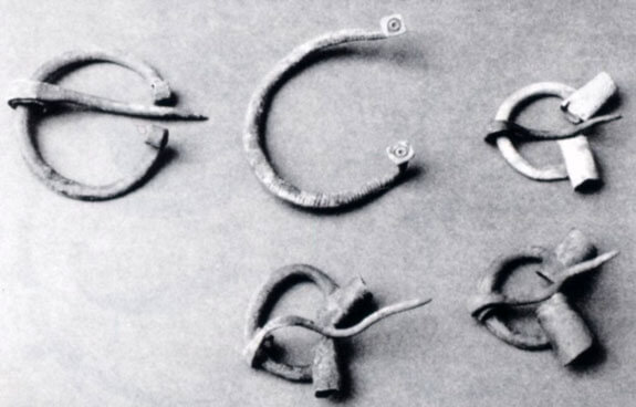 Horse-shoe-shaped pins with cylindrical ends from Marvelė burial ground, similar to Scandinavian pins