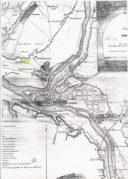 Vilijampolė Jewish cemetery in the city plan of 1861