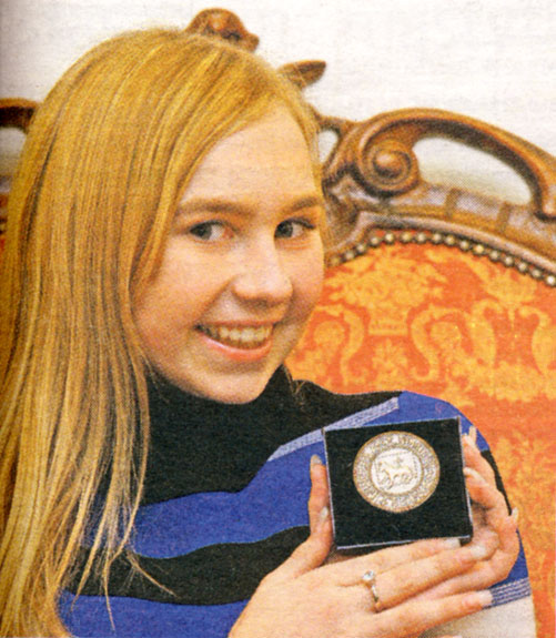 M. Mažvydo vidurinės mokyklos šeštokė dainininkė S. Milinytė apdovanota Kauno miesto jubiliejiniu medaliu